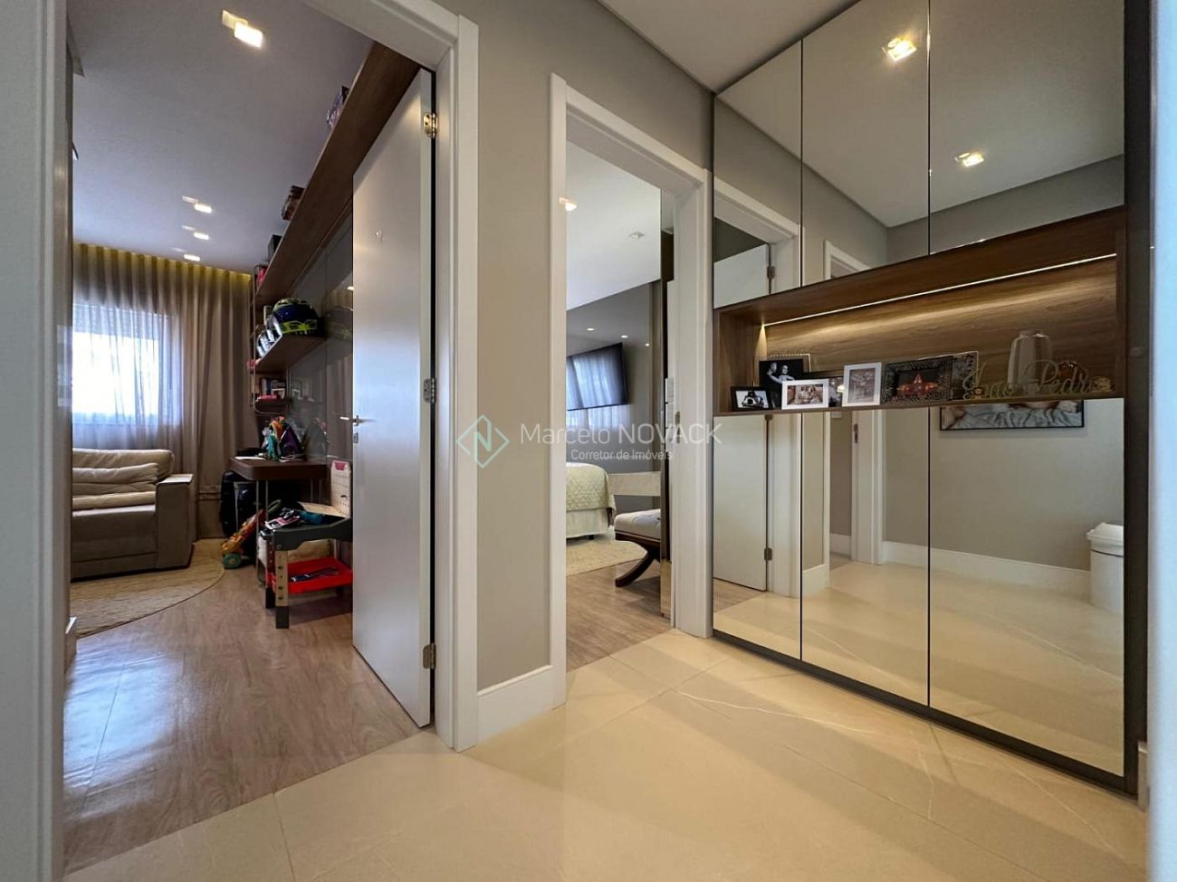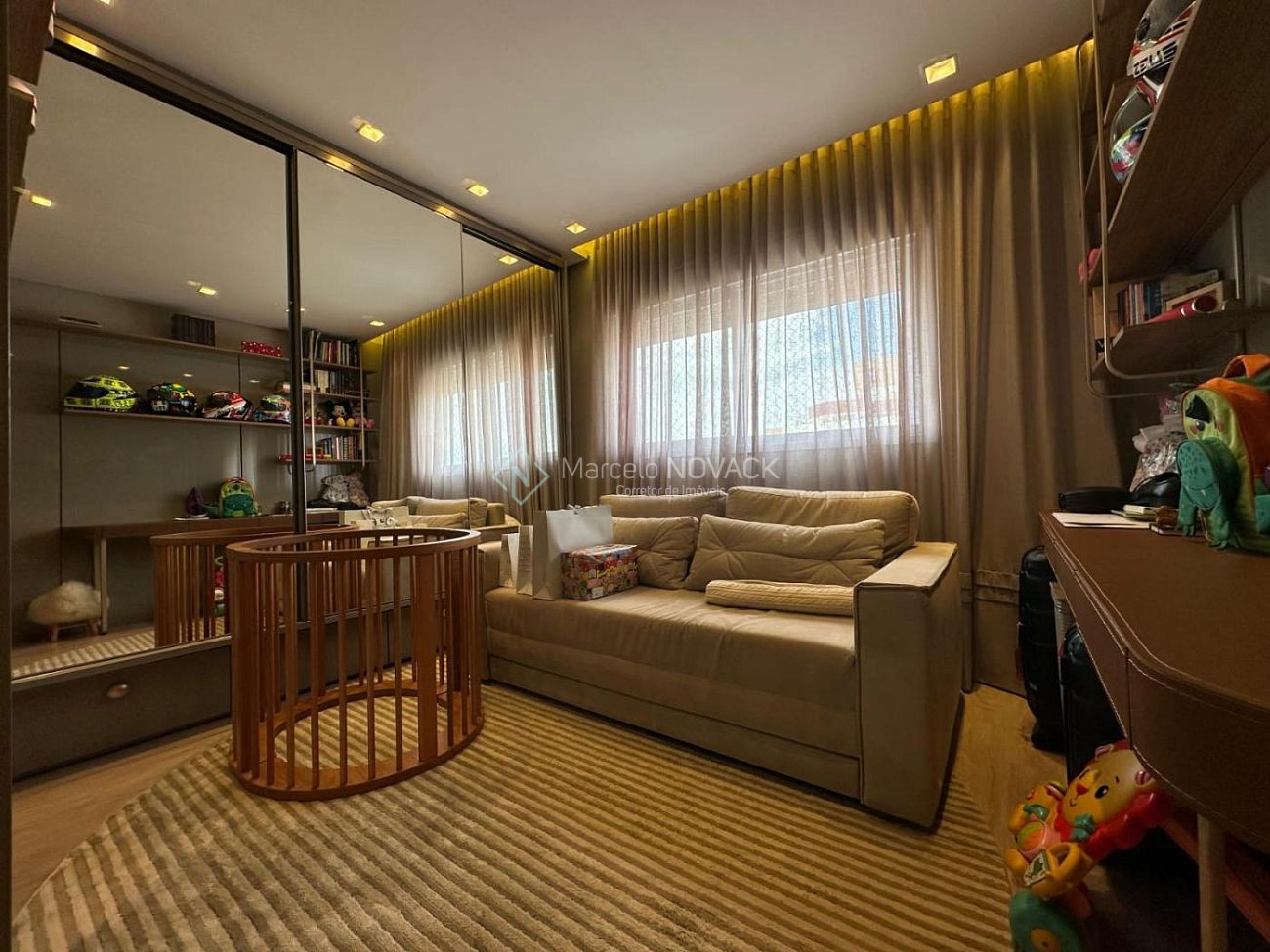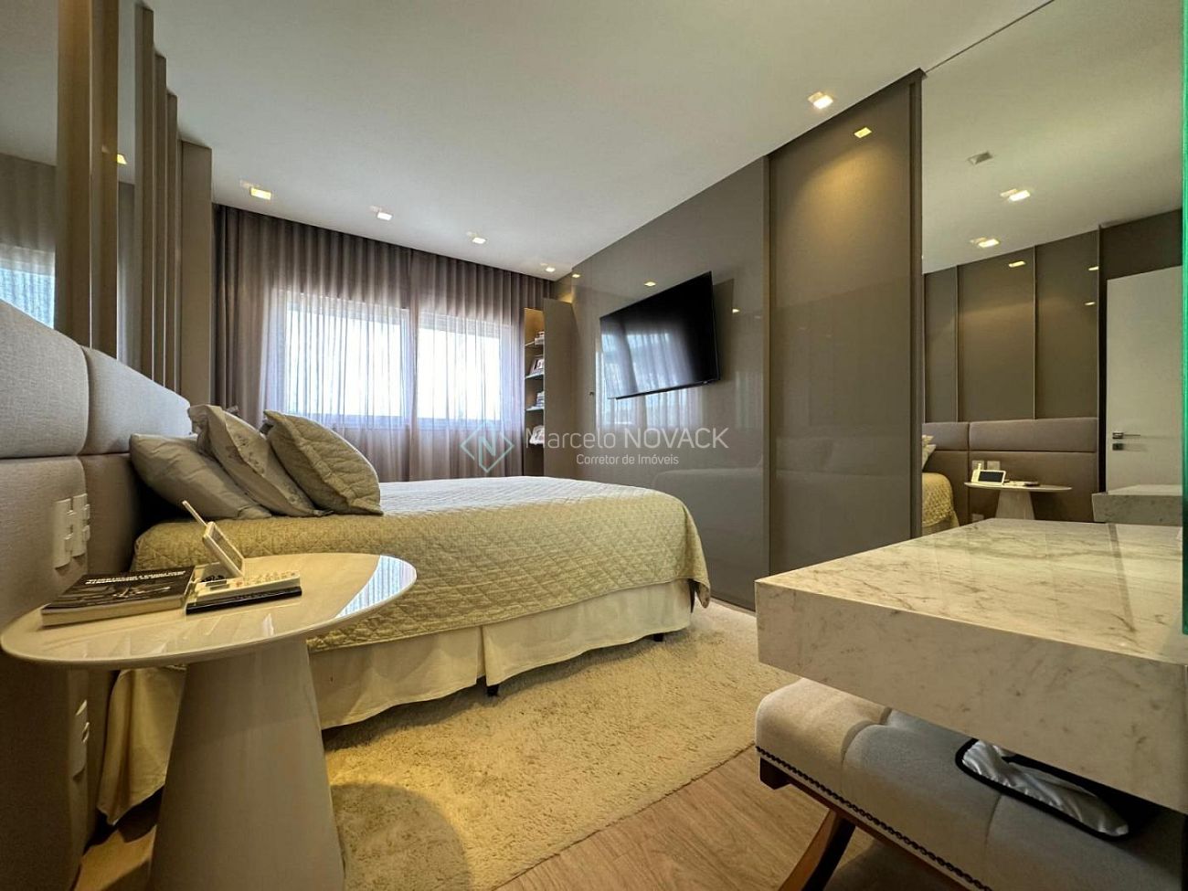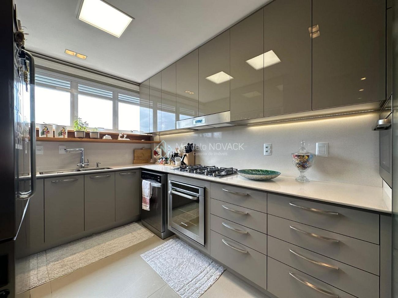 Cortinas elétricas na cozinha e em uma das suítes