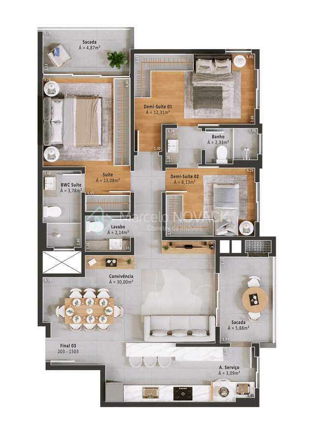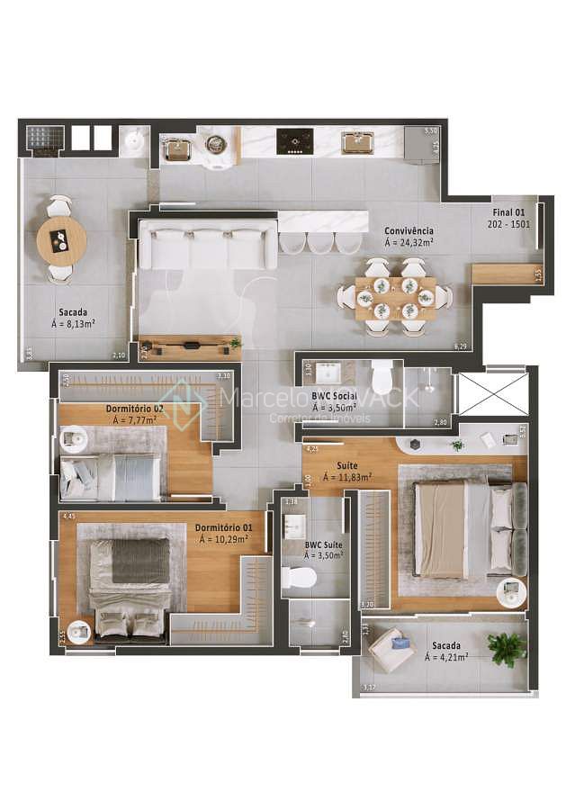 * 03 Quartos sendo 01 suíte com sacada