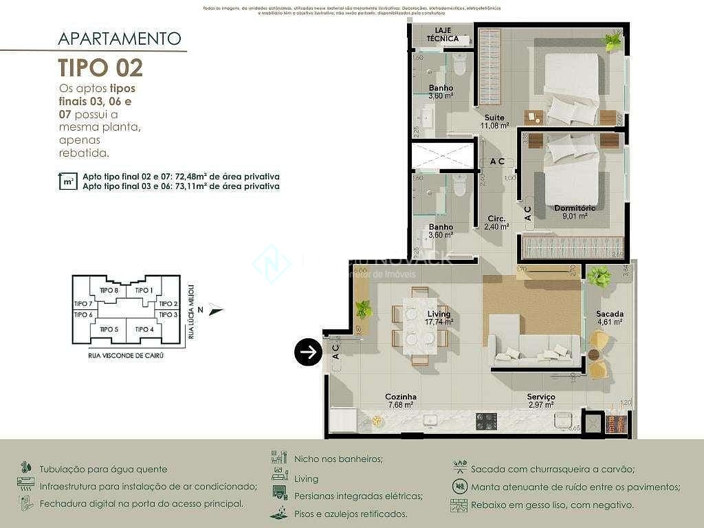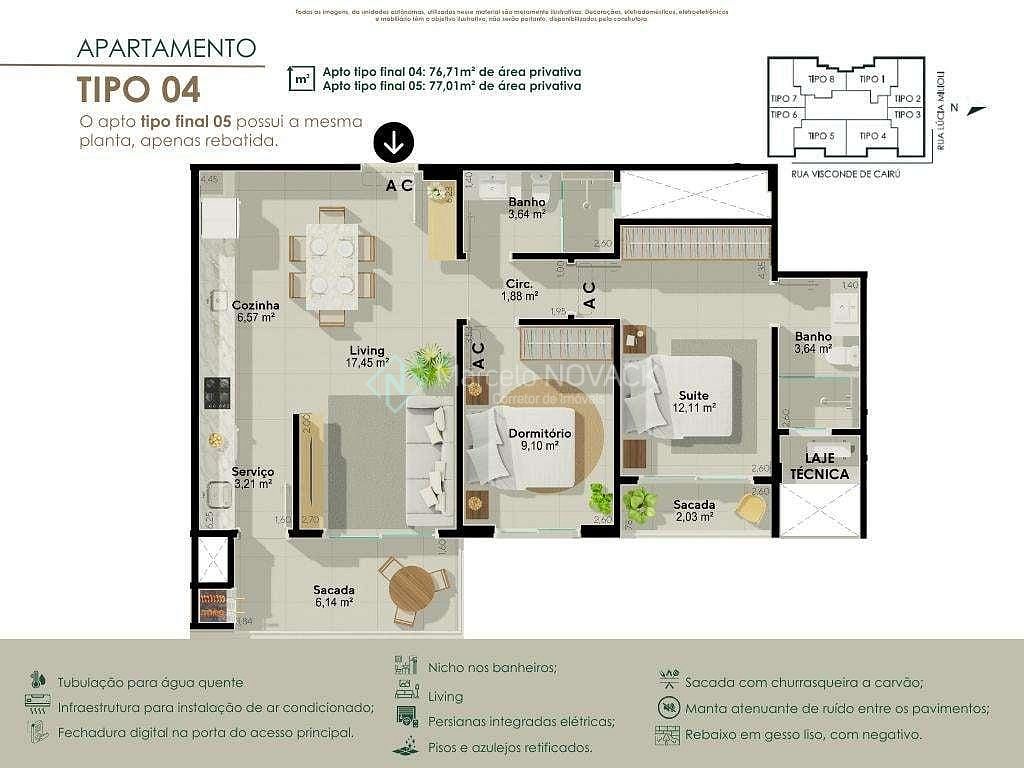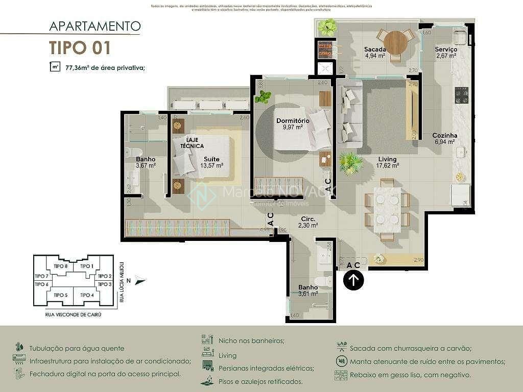 Aptos de 72 m² a 77m² privativos .
