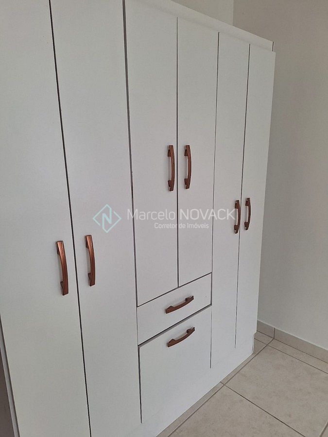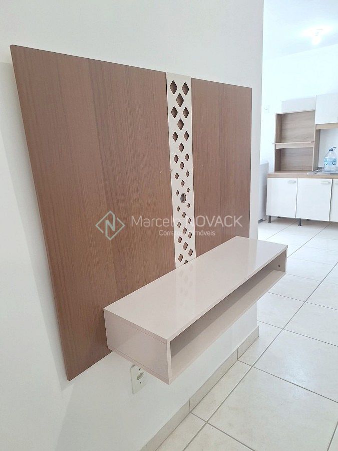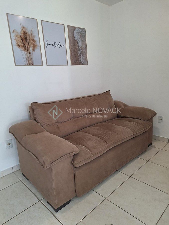 Apartamento de 2 dormitórios, cozinha, sala de estar/jantar, banho social, área de serviço, sacada e vaga de garagem.