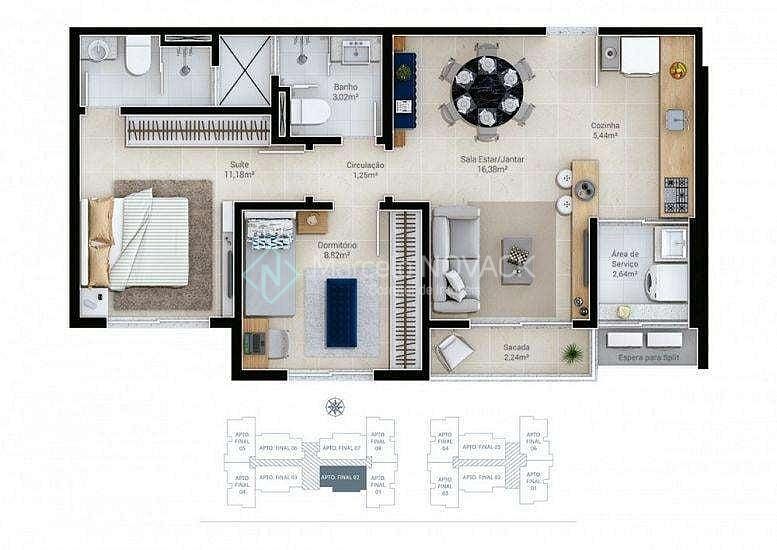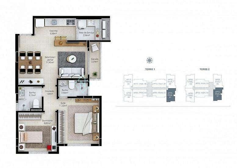 * 02 dormitórios sendo uma suíte,