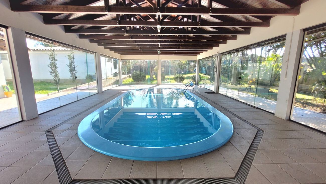 Um espaço onde tem uma piscina toda coberta, fechada e aquecida, 2 salas, banheiro e cozinha.