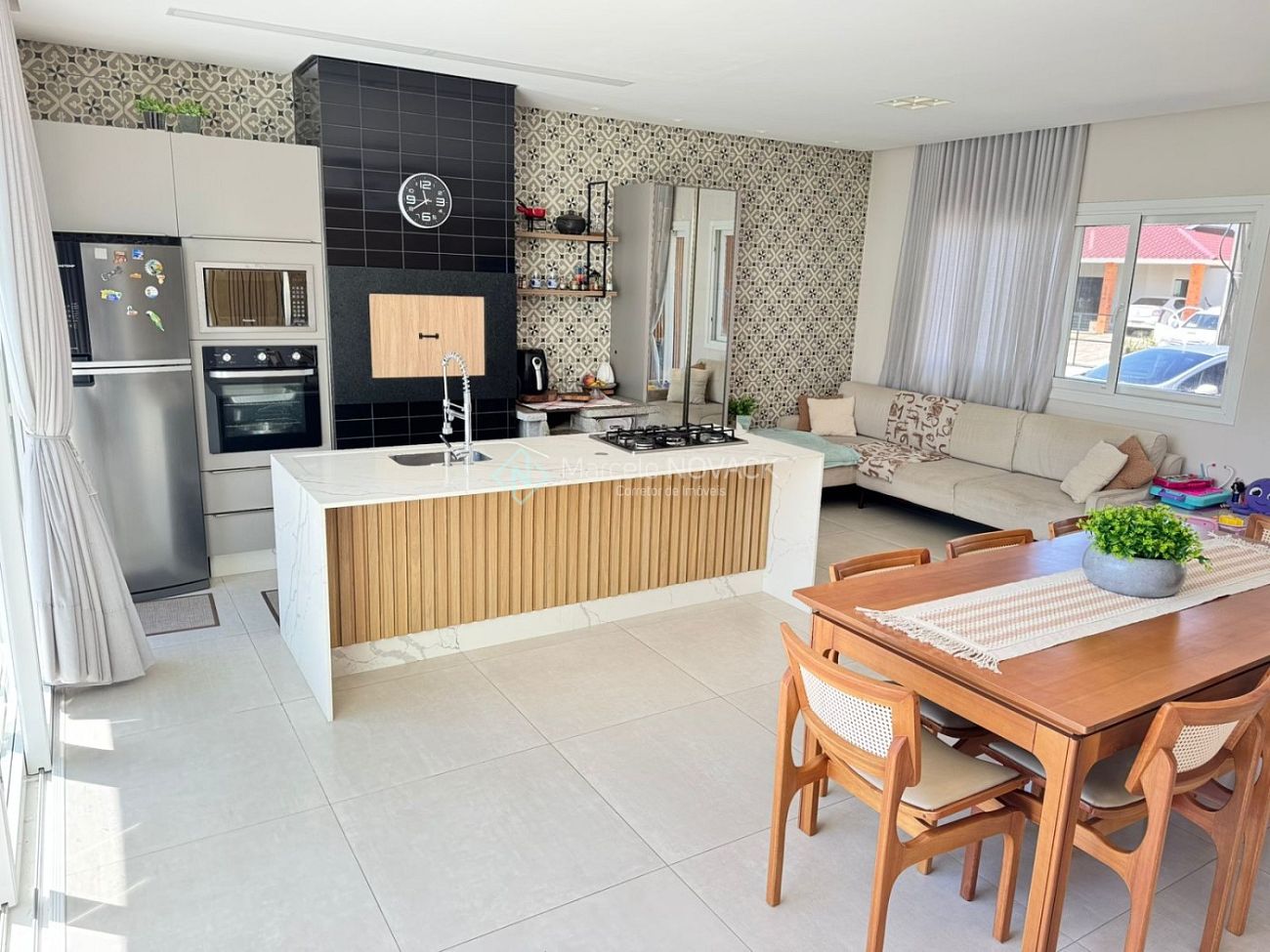 * Cozinha com bancada em ilha, churrasqueira à carvão