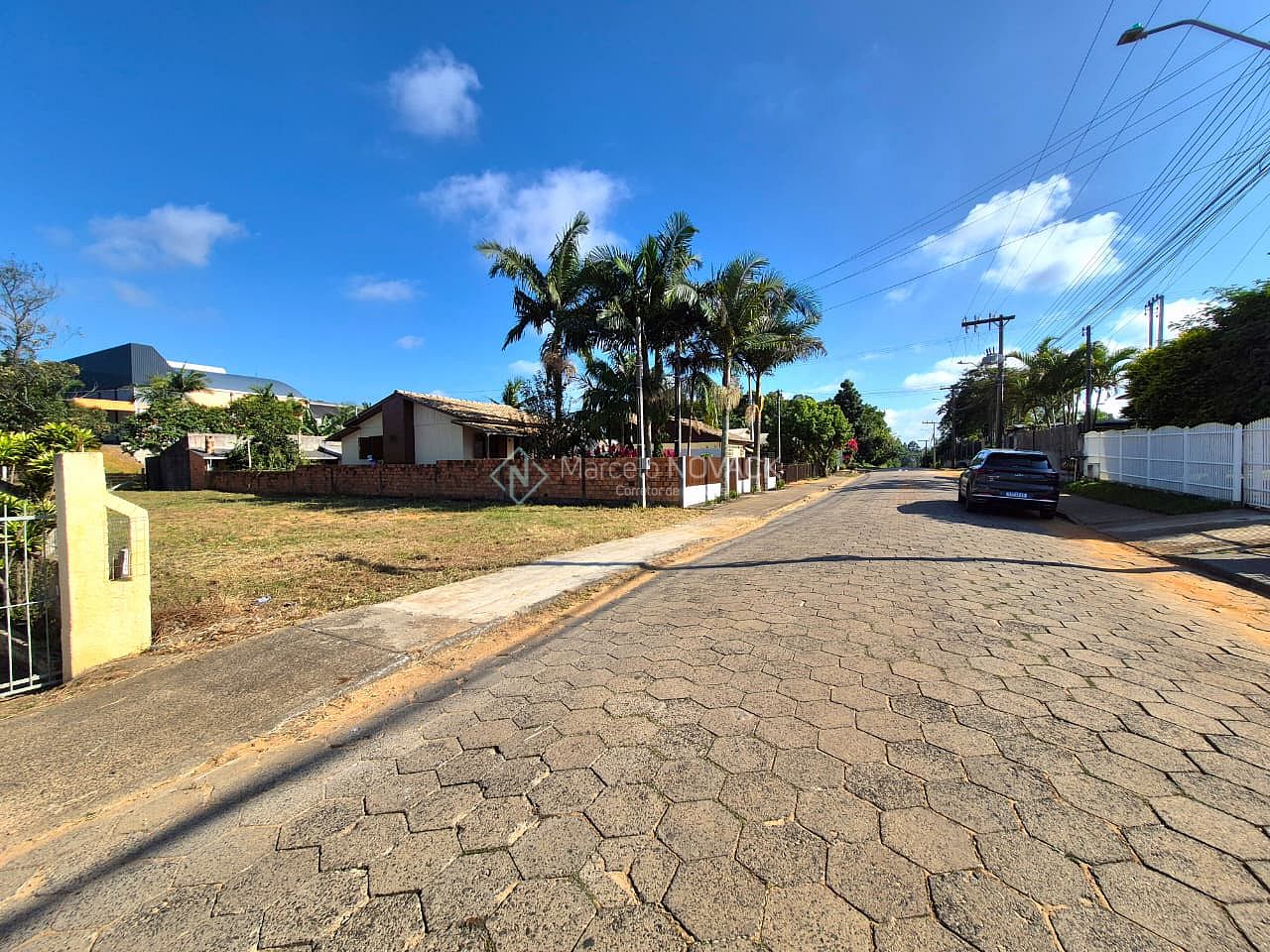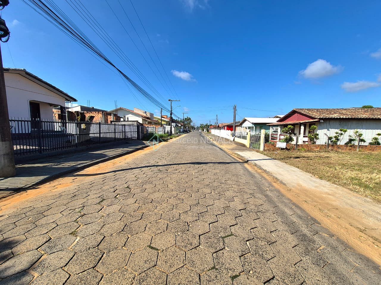 Rua pavimentada, várias casas já construida.